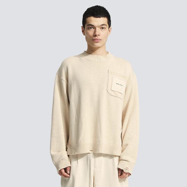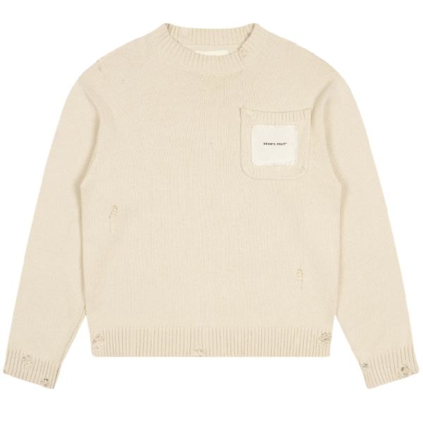 Bram's Fruit Distressed Chest Pocket Knit Sweater Beige