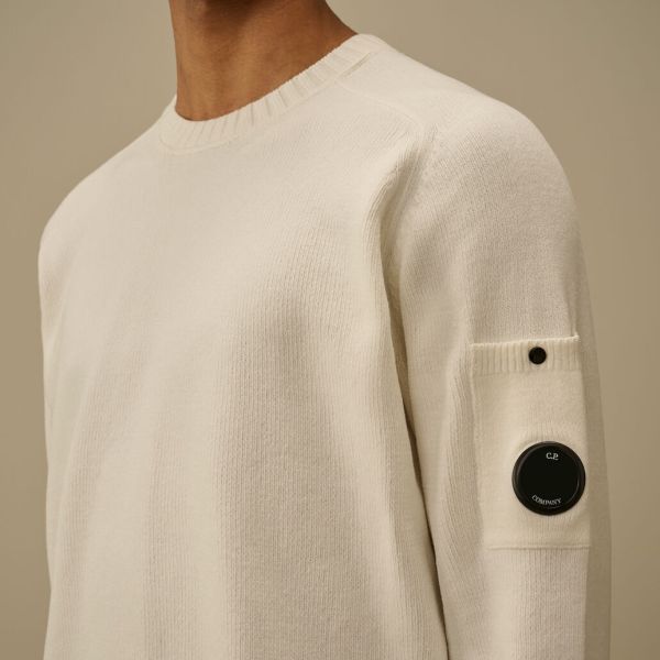 CP Company Cotton Chenille Lens Knit Sweater Wit