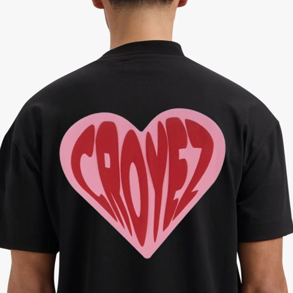 Puffed Heart T-shirt Zwart