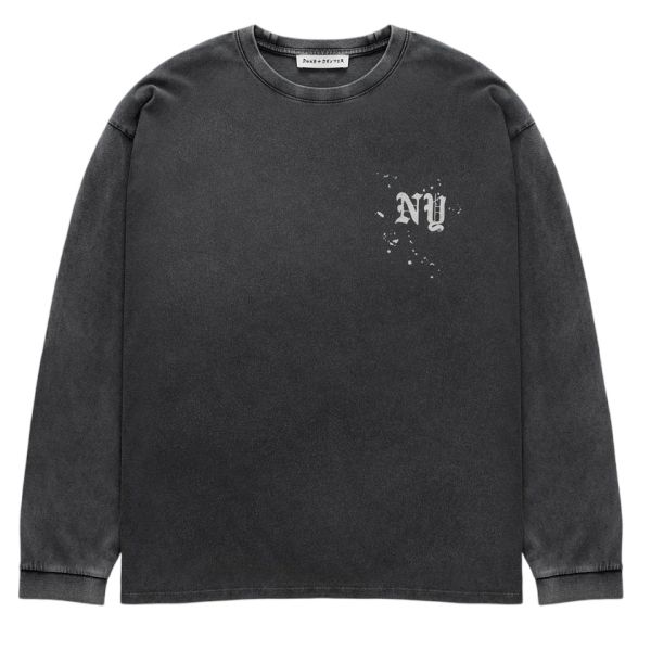 NY Paint Splatter Washed Longsleeve T-shirt Grijs