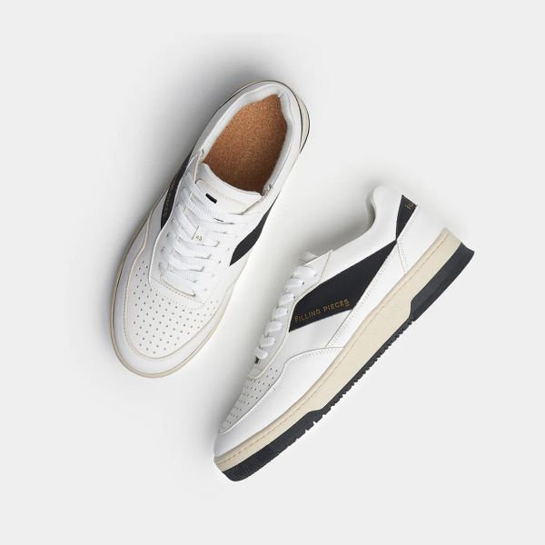 • De sneaker van Filling Pieces in de kleuren wit en zwart is gemaakt van leer.
