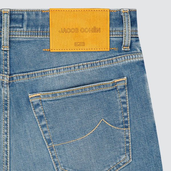 - De jeans van Jacob Cohën in de kleur licht blauw zijn gemaakt van katoen, lyocell en elastaan.