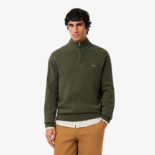 Lacoste Knitted Half Zip Sweater Donker Groen