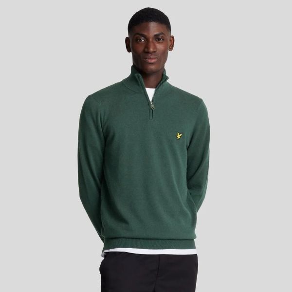 Cotton Merino Quarter Zip Sweater Donker Groen