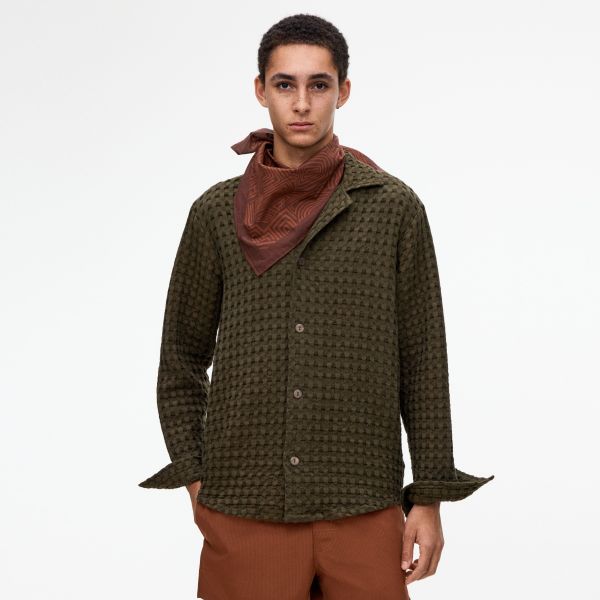 Cuba Waffle Overhemd Donker Groen