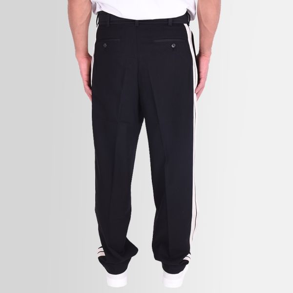 • Broek met witte strepen op de pijpen.