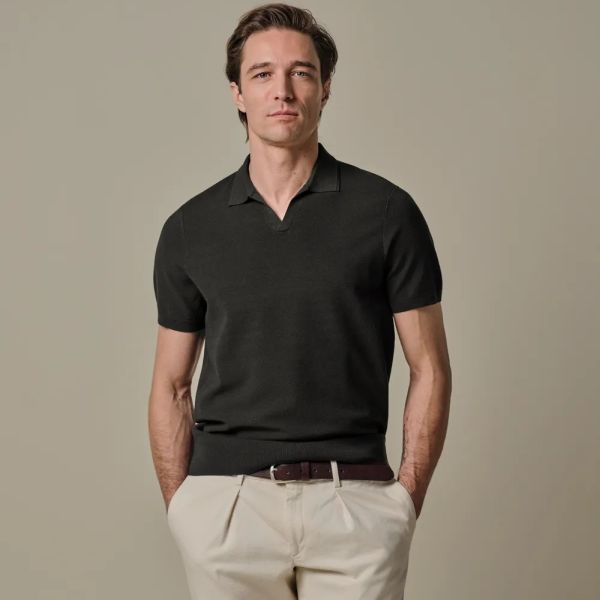 Luxury Open Collar Polo Donker Bruin