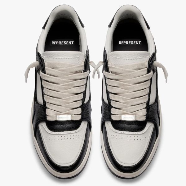 • De sneaker van Represent in de kleuren zwart en wit is gemaakt van leer en rubber.