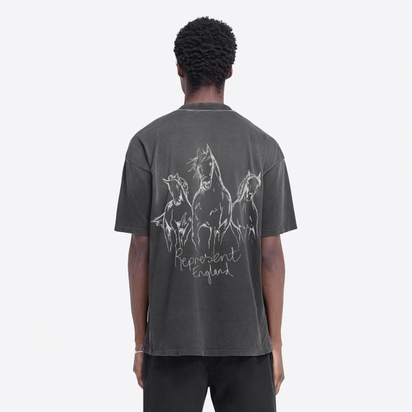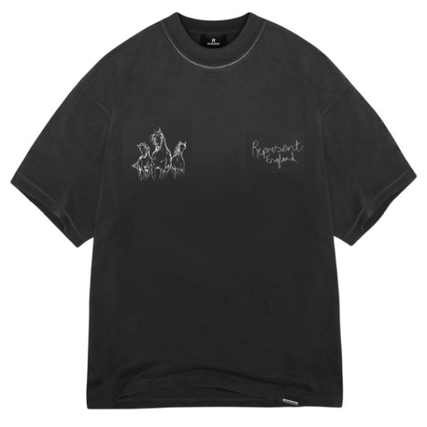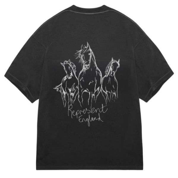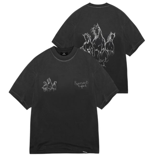 • T-shirt met Represent 'Hand Drawn Thoroughbred Horses' logoprint op de voor- en achterkant.
