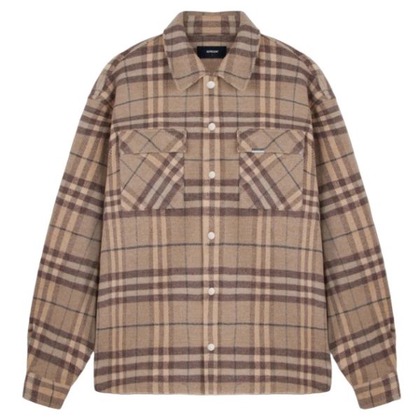 Intial Print Flannel Overshirt Bruin