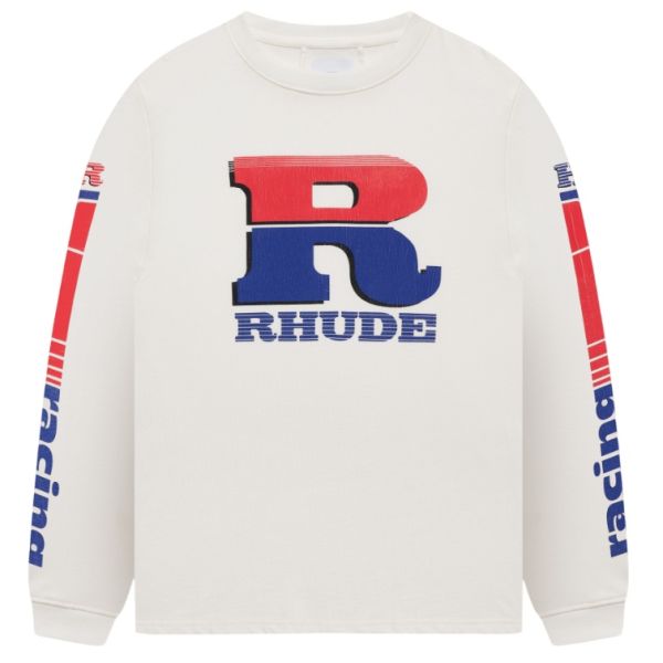Rhude Split Petrol Logo Longsleeve T-shirt Off White