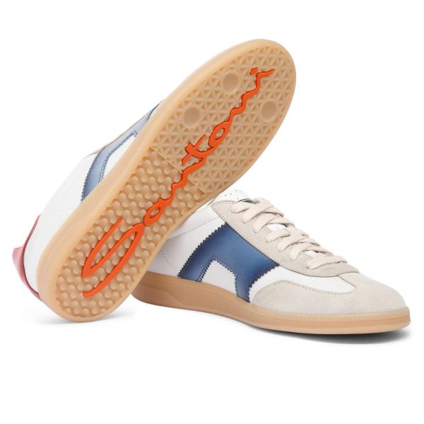 Santoni Double Buckle Signature Olympic Sneaker Wit/Blauw/Rood