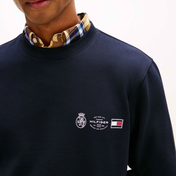 Small Crest Outline Sweater Navy