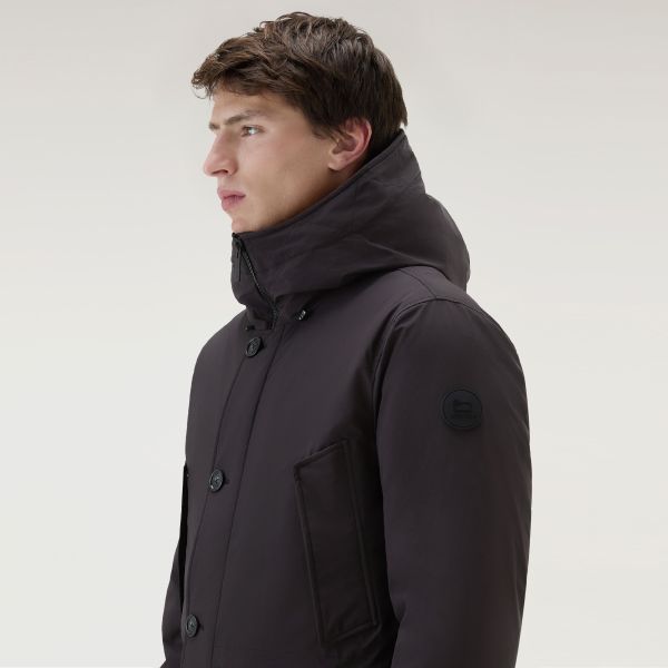 • De parka van Woolrich in de kleur zwart is gemaakt van polyamide en elastaan.