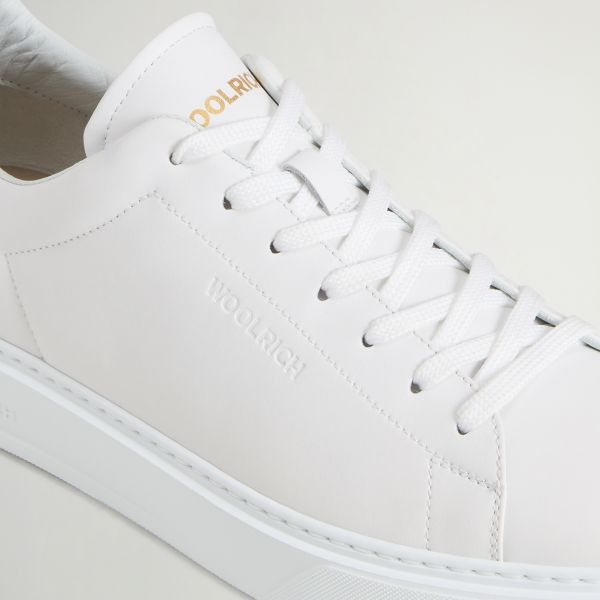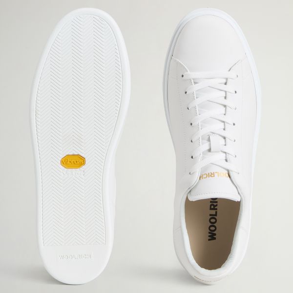 • De sneaker van Woolrich in de kleur wit is gemaakt van leer.