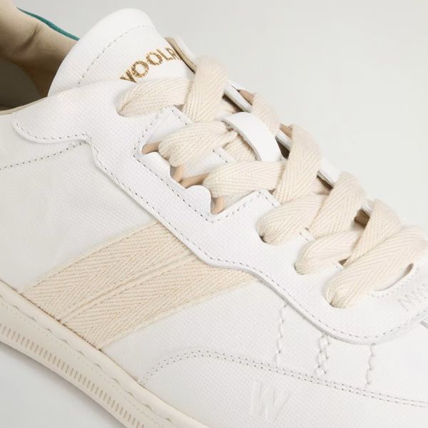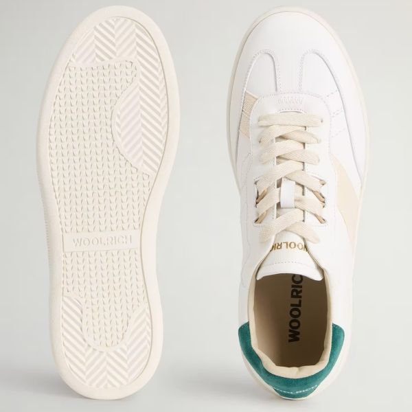 • De sneaker van Woolrich in de kleur wit is gemaakt van leer.