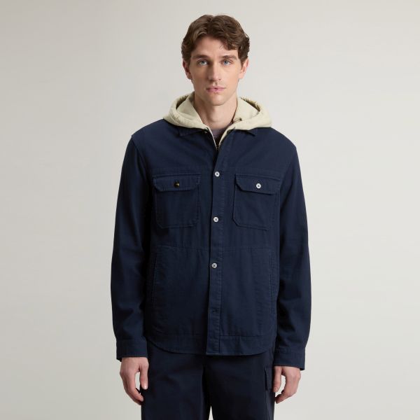 • Het overshirt van Woolrich in de kleur navy is gemaakt van gemaakt van katoen, linnen en elastaan.
